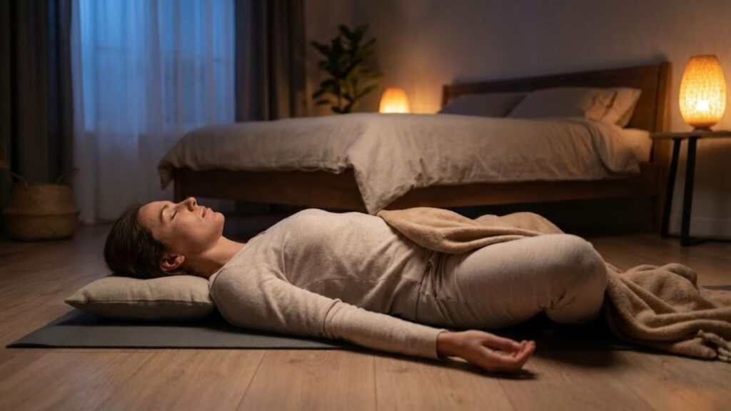 Some yoga poses work directly on the nervous system, encouraging the body to shift out of stress mode. Slow, floor-based postures combined with mindful breathing help lower heart rate and quiet racing thoughts. These poses emphasize deep belly breathing, promote gentle spinal release, and support mental unwinding after a long day. Practicing them consistently can reduce bedtime restlessness and help you feel safe enough to relax fully. The key is moving slowly, holding each pose comfortably, and focusing on the rhythm of your breath rather than perfect alignment.